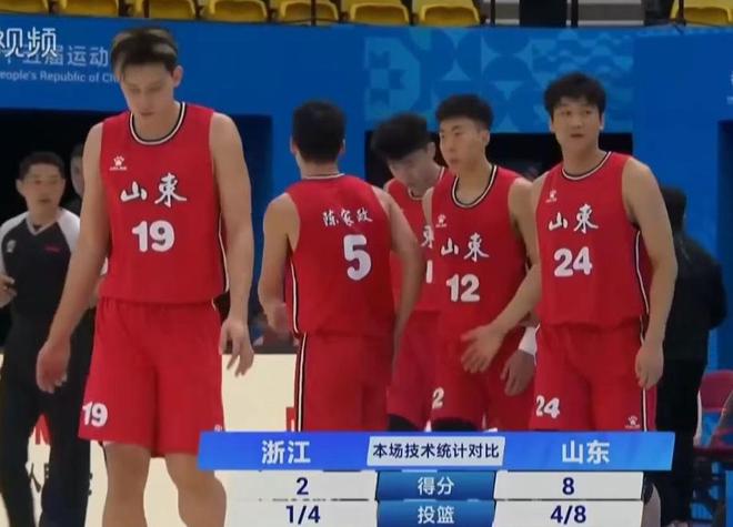 全运会U22男篮八进四的比赛,山东队对阵浙江队。山东队是夺冠热门,小组赛四战全胜。浙江队在小组赛的表现也非常不错,两胜一负排名小组第二。不过无论是从阵容还是实力上,两队的差距还是非常明显的。山东队全场掌控着局面,逐渐取得了20分以上的巨大领先。虽然浙江队末节比赛打出内线优势缩小了分差,却无力回天,山东队最终力克对手晋级四强。球员表现方面,景天雨12分3助攻,章海波7分,周怡衫11分5篮板,刘双语16分10篮板;山东队方面,陈家政13分5篮板3抢断,段昂君21分5篮板5助攻5抢断,崔新泉11分3篮板3抢断,曲笑宇19分12篮板4抢断。
